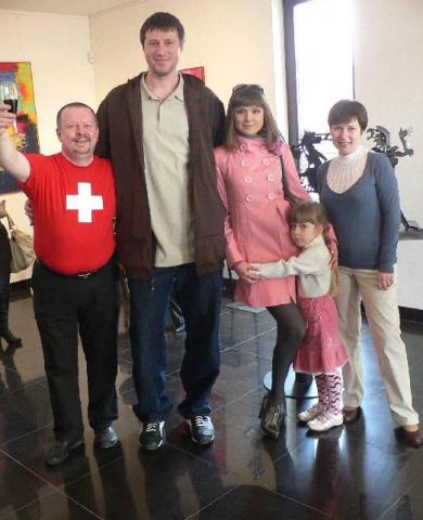 Зірка світового баскетболу, двократний чемпіон НБА В'ячеслав Медведенко із Юлєю Бурковською та родиною Іванових