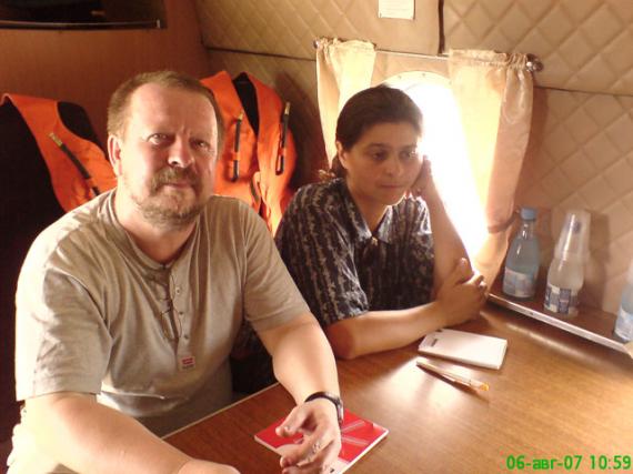 Авгуcт 2007. ВИ и Оксана Гришина летят на Змеиный