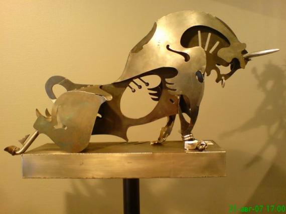 Как называется стиль, в котором он работает, Владимир и сам толком не знает: металлопластика, трехмерная металлографика, аргонодуговая сварка… «Стиль работ пусть определяют искусствоведы, для меня важнее, что эта технология интеллектуальноемкая и интенсивная. В ней мало промежуточных, скучных процедур, процесс работы творческий, а путь от идеи до воплощения настолько молниеносный, что мысль реализуется остро и свежо. Работы у меня контекстные, я в них вкладываю свои впечатления».